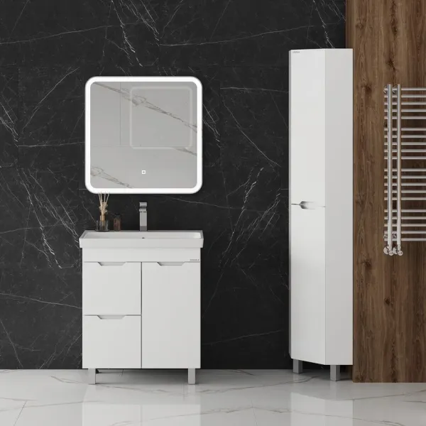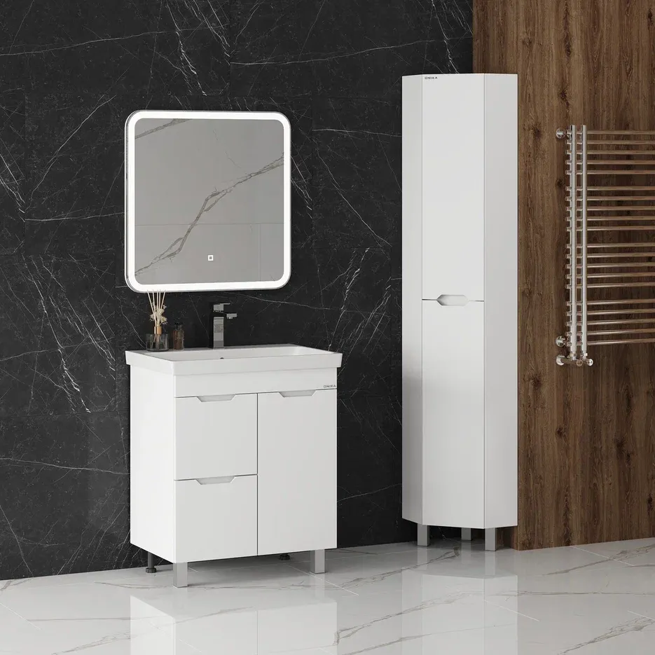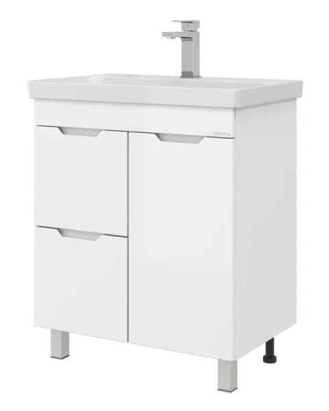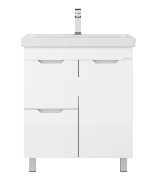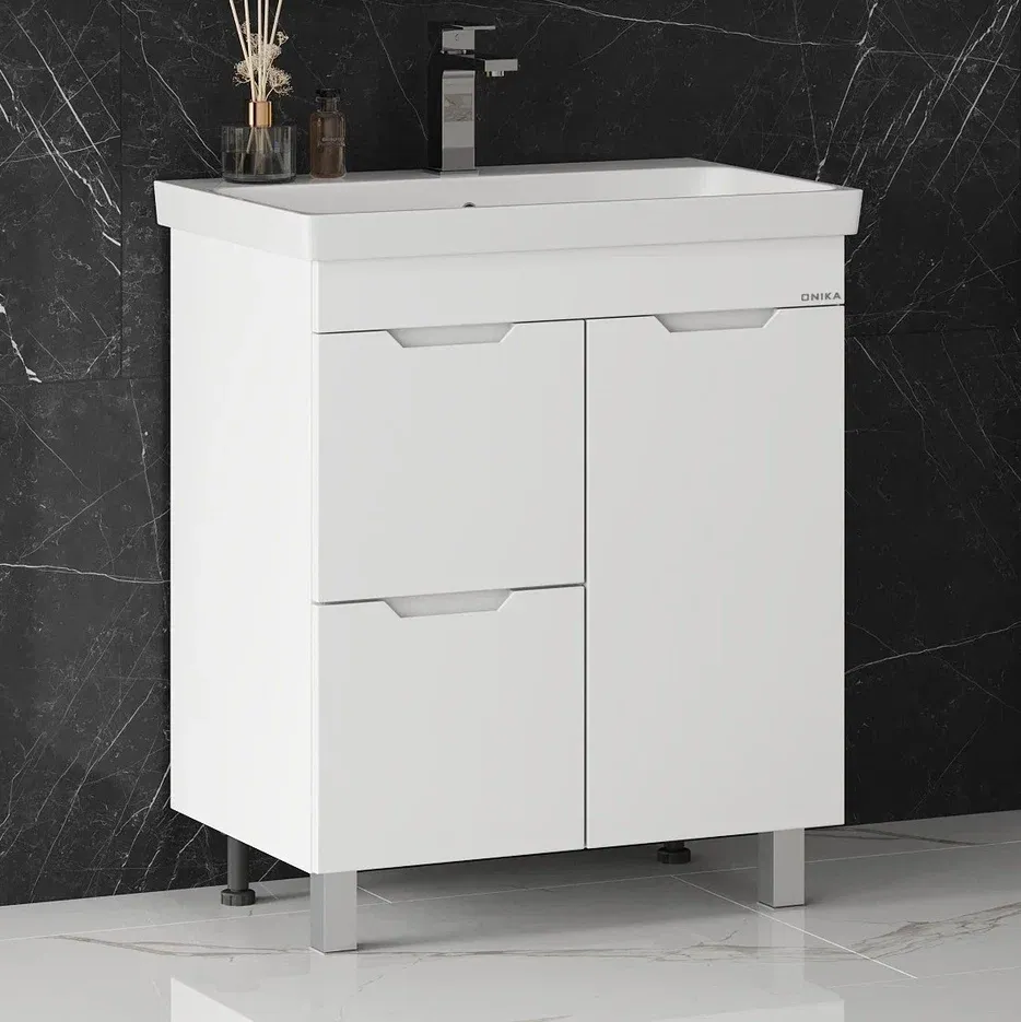 Напольная тумба для ванной комнаты Onika Айленд 70 сочетает в себе стильный минималистичный дизайн, белую глянцевую поверхность и высочайшее качество исполнения.