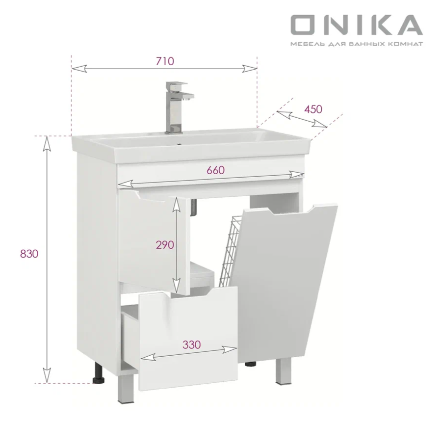 Размеры тумбы без учета раковины 66x43x68 см.