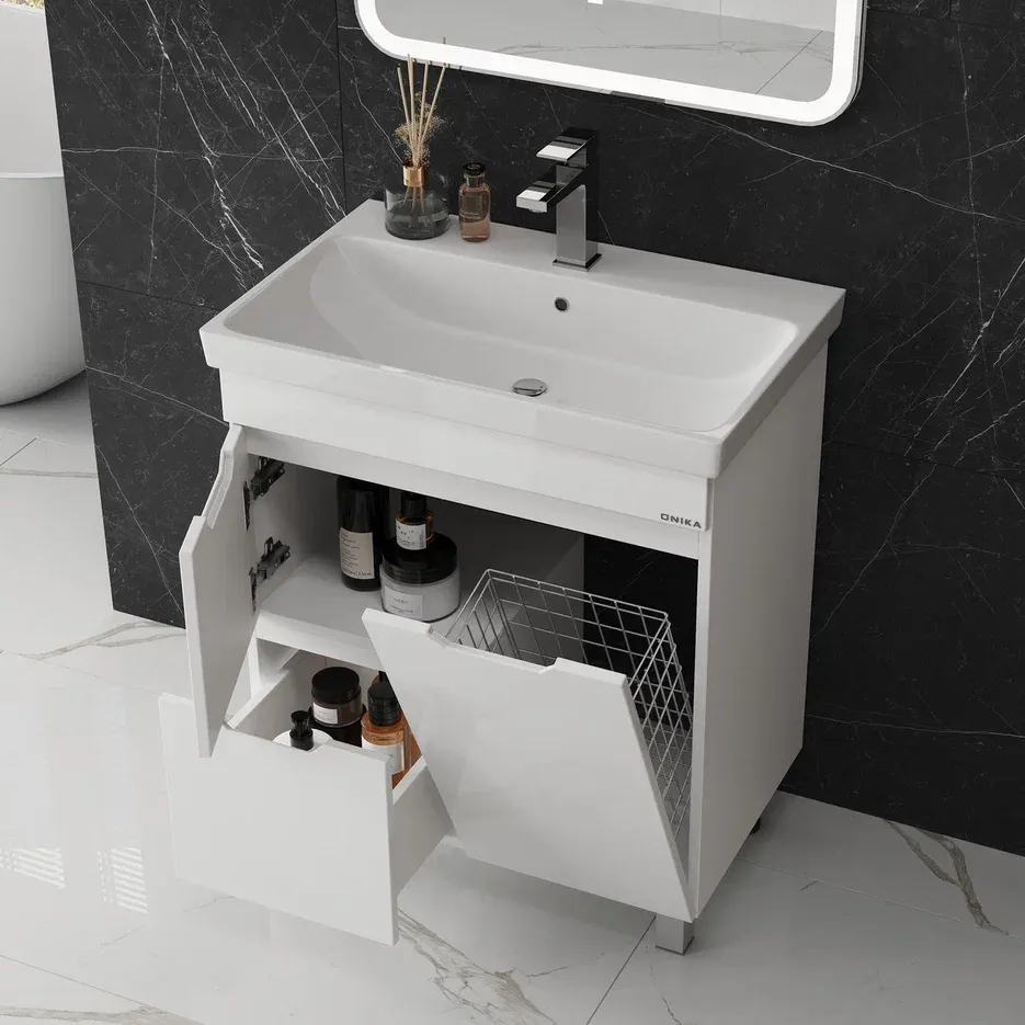 Напольная тумба Onika Айленд 107062 с корзиной 70см белый купить
