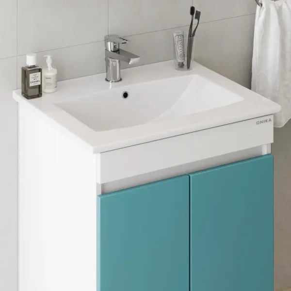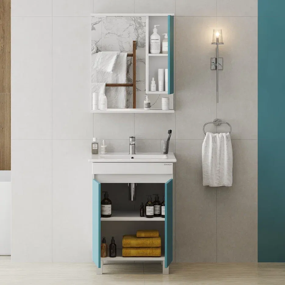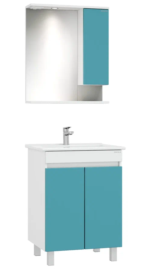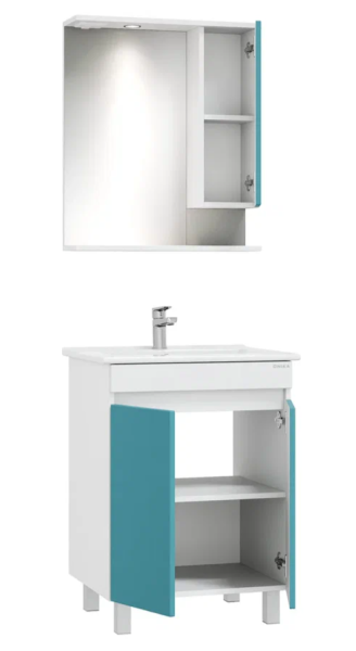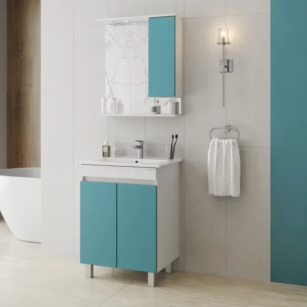Напольная тумба Марви 60 нежного бирюзового цвета добавит интерьеру ярких красок и придаст ванной комнате ощущение свежести, чистоты и уюта.