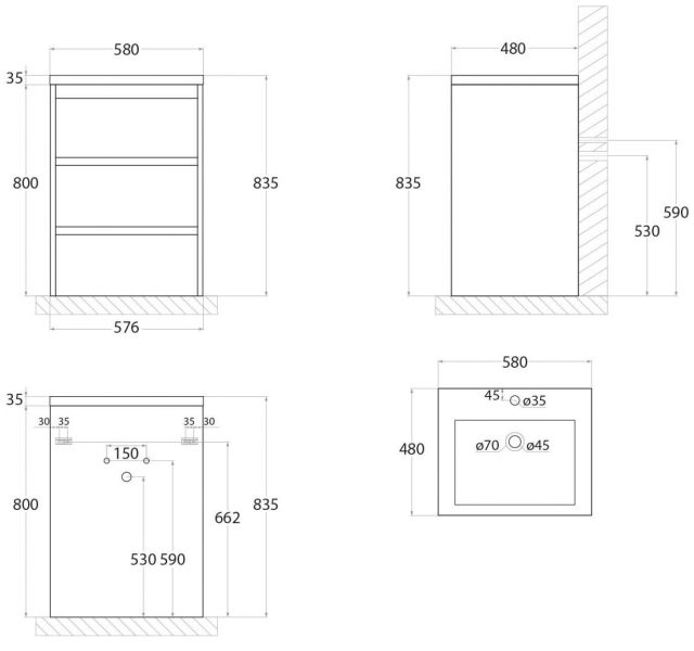 Тумба под раковину Art&Max выполнена в современном стиле и прекрасно впишется в интерьер любой ванной комнаты. Напольная конструкция обеспечивает легкий монтаж и не требует специального ремонта в помещении. Модель оснащена тремя выдвижными ящиками с доводчиками. Фасад изделия выполнен из ЛДСП.Тумба может использоваться вместе с раковиной AM-LAV-580-MR-A.Раковина и смеситель в комплект поставки не входят и приобретаются отдельно.Особенности: