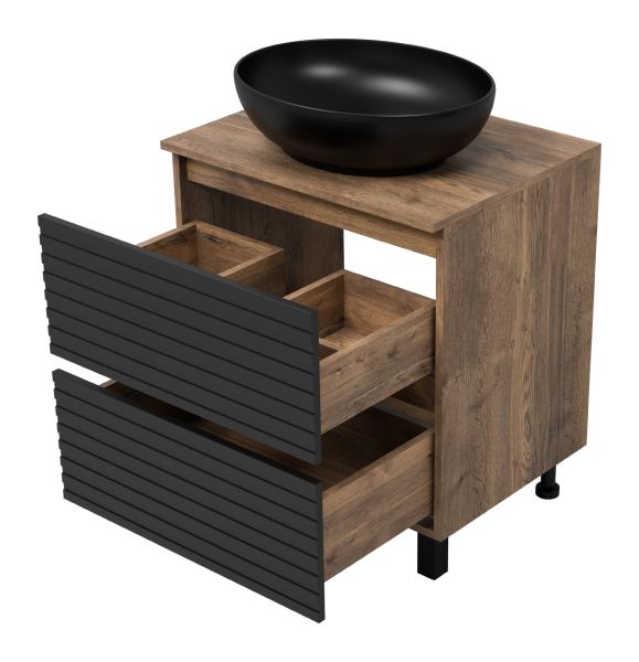 Напольная тумба под раковину Brevita Dakota DAK-07060-19/02-2Я 60см дуб Галифакс олово/чёрный купить