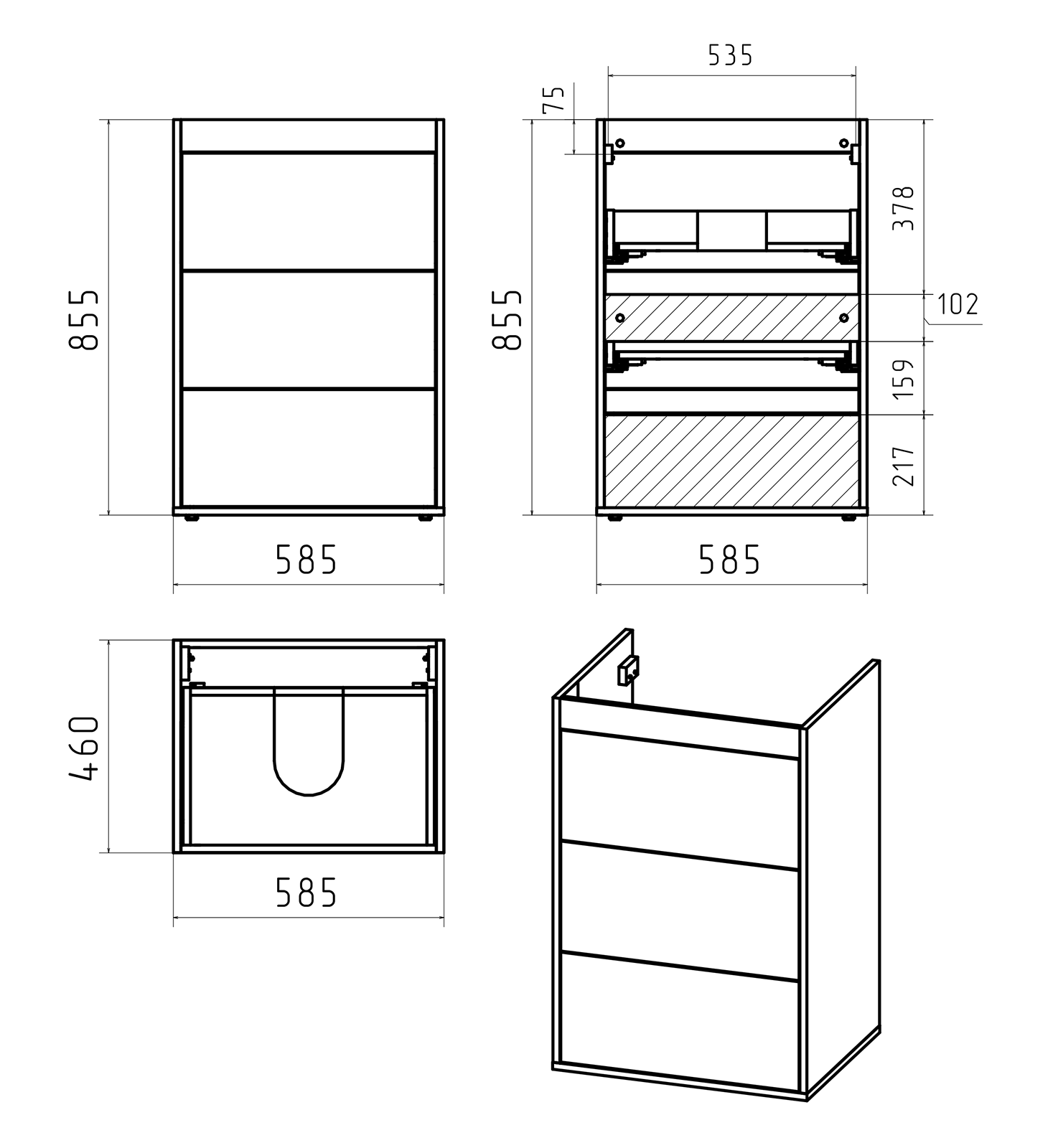 Напольная тумба под раковину Brevita Grafit GRA-01060-013Я под стиральную машину 60см графит купить