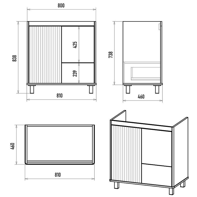 Габариты корпуса тумбы (ШхВхД): 810х838х460 мм.