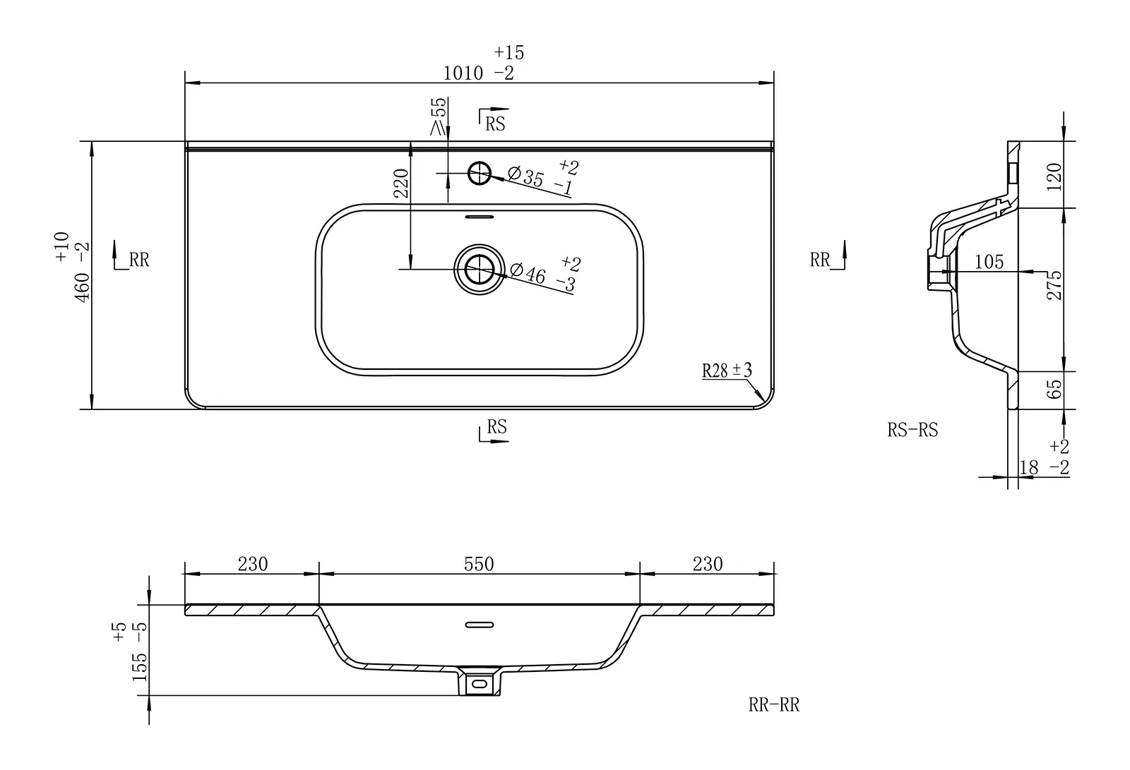Размер раковины, мм (ш/г/в): 1010x460x155