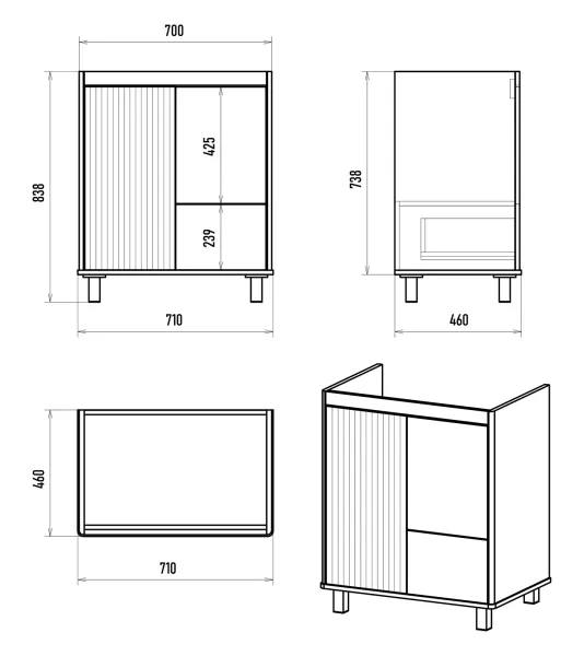 Размер тумбы, мм (ш/г/в): 704x460x738