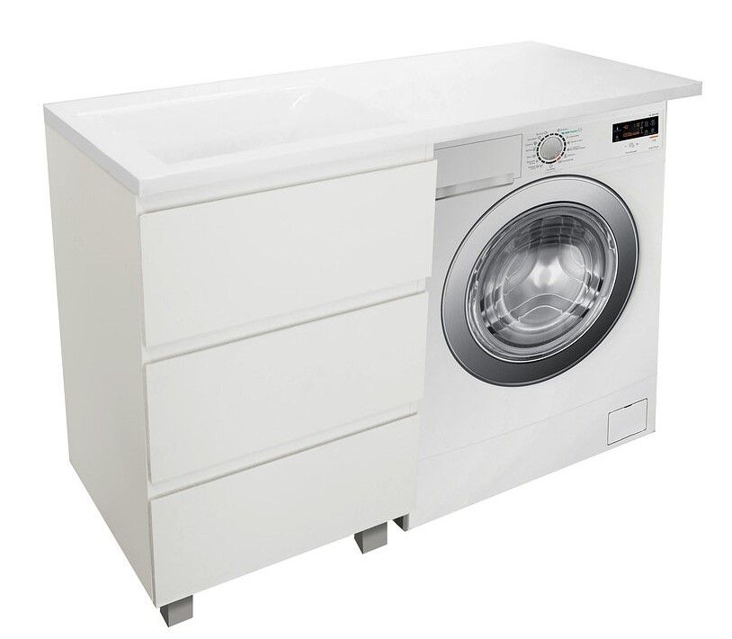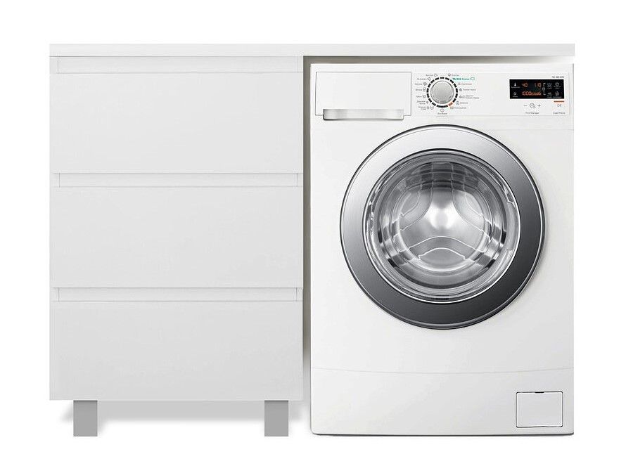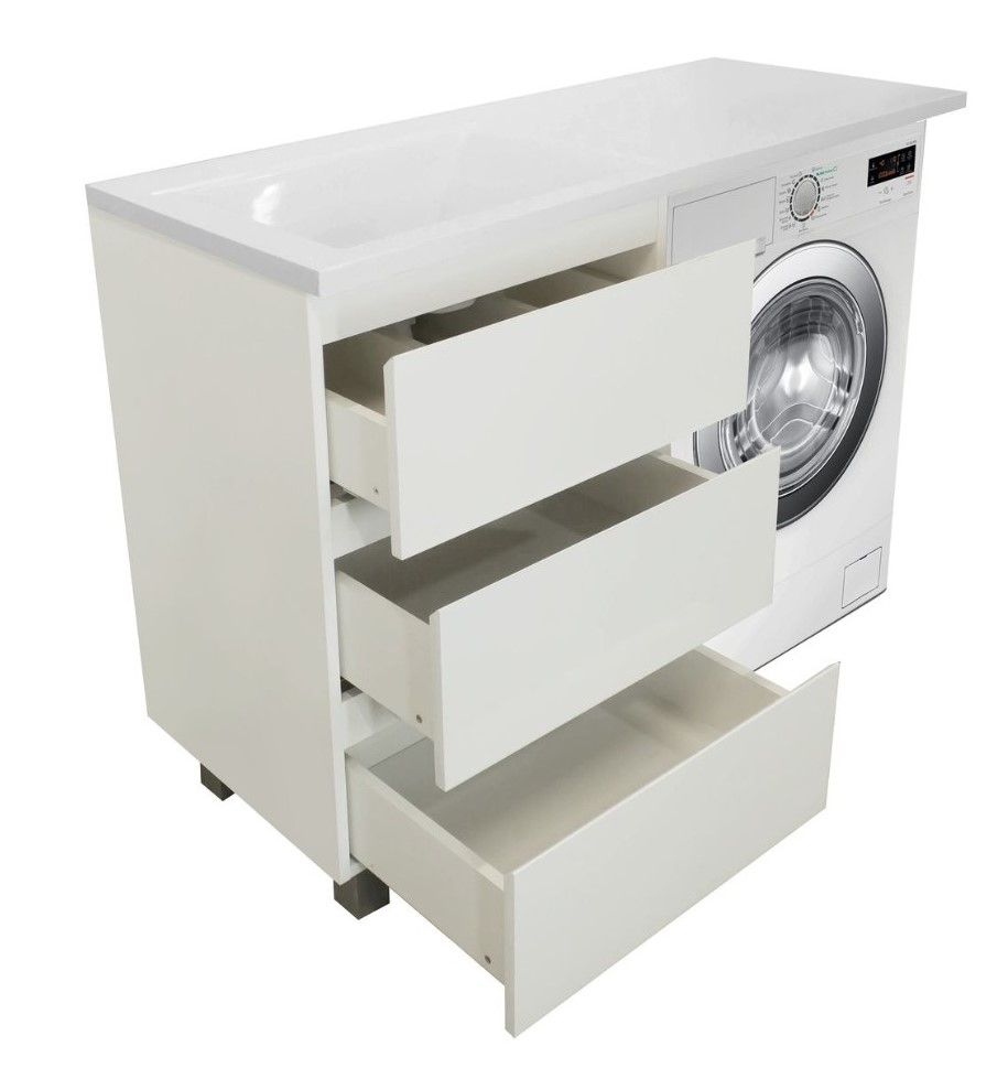Приоритетом в выборе тумбы с раковиной является площадь ванной комнаты. Функциональная тумба с тремя ящиками решит вопрос для большинства покупателей. Тумба укомплектована раковиной из литьевого мрамора с удобной чашей, стиральная машина устанавливается под столешницей. Три ящика позволят распределить как крупные, так и мелкие вещи.