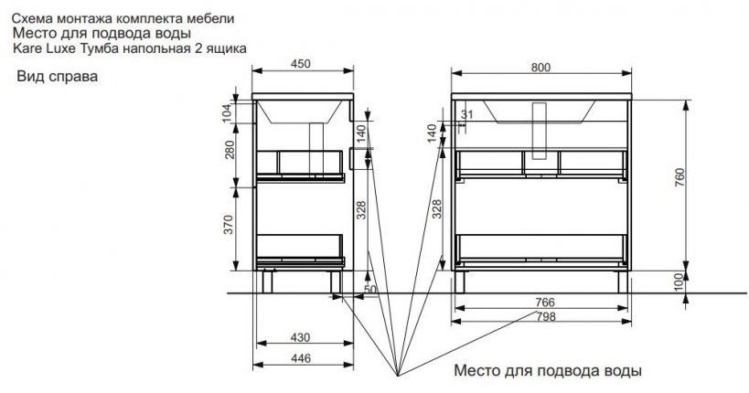 Напольная тумба под раковину Kare Luxe ФР-00005714 80см два ящика белый купить