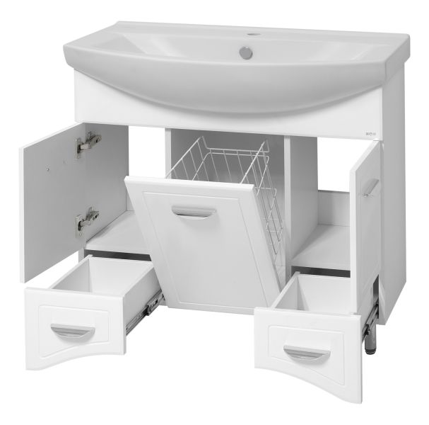 Напольная тумба под раковину Misty Дрея 85см с бельевой корзиной белый купить