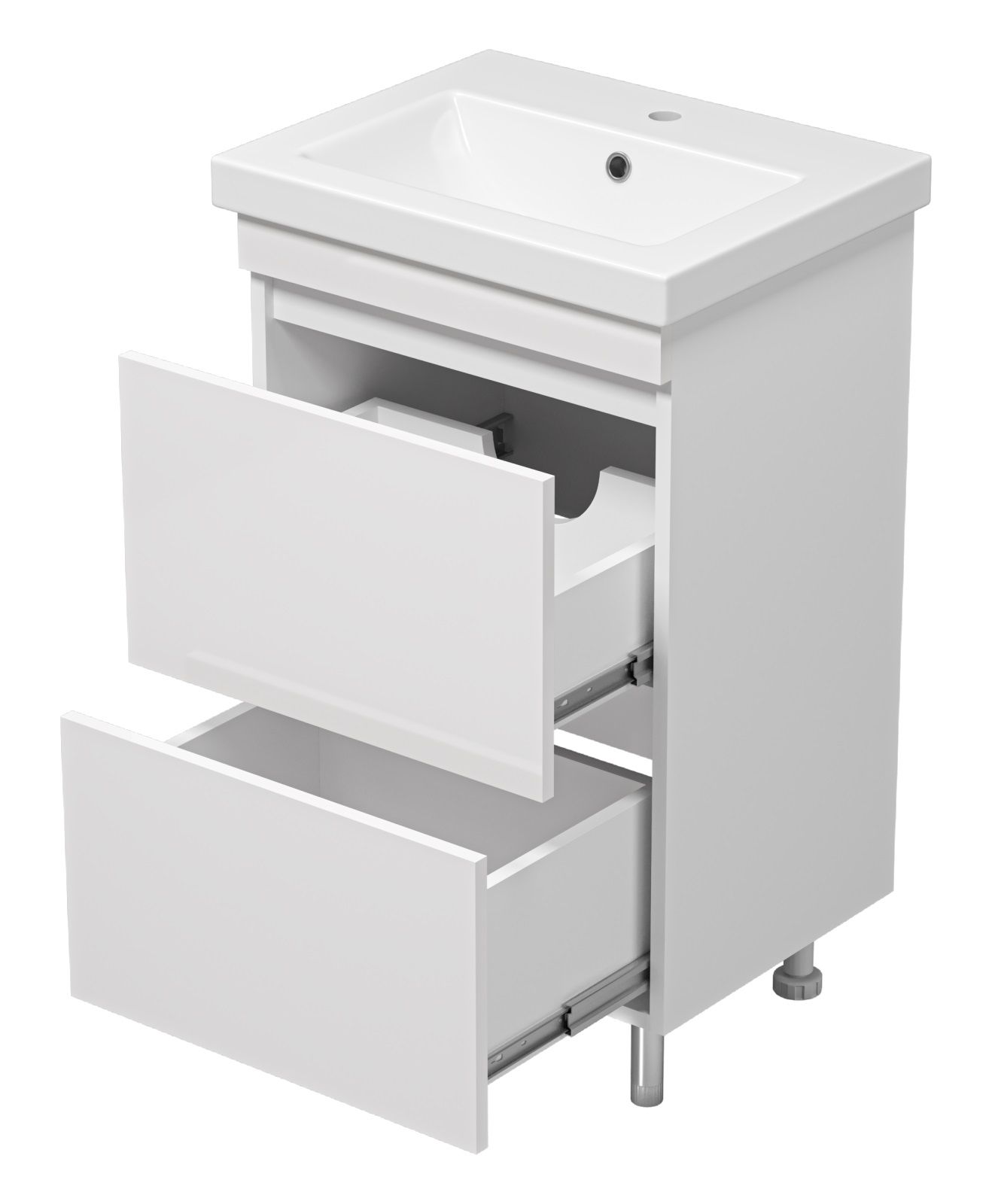 Напольная тумба под раковину Misty Енисей 50см с двумя ящиками белый купить