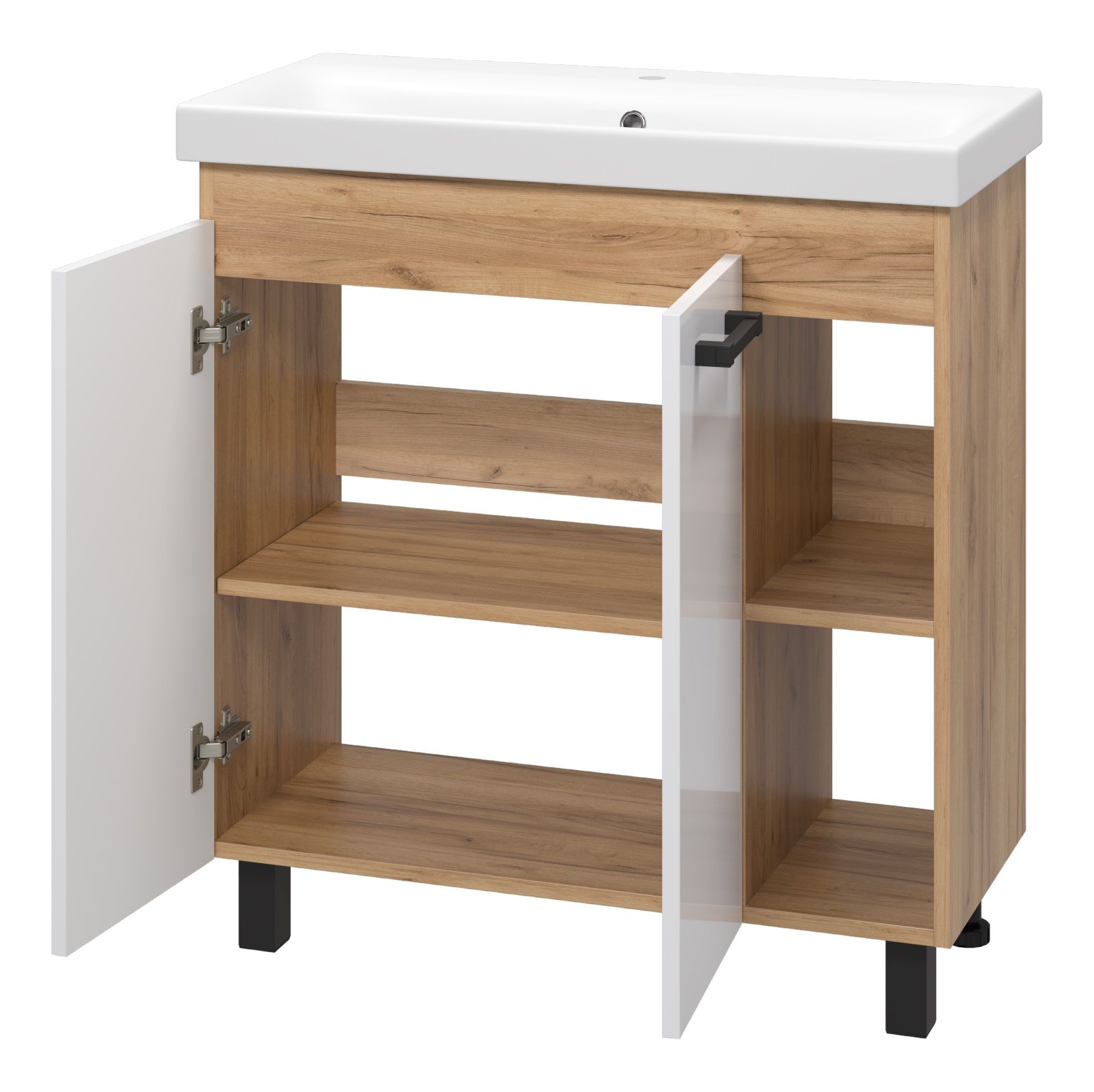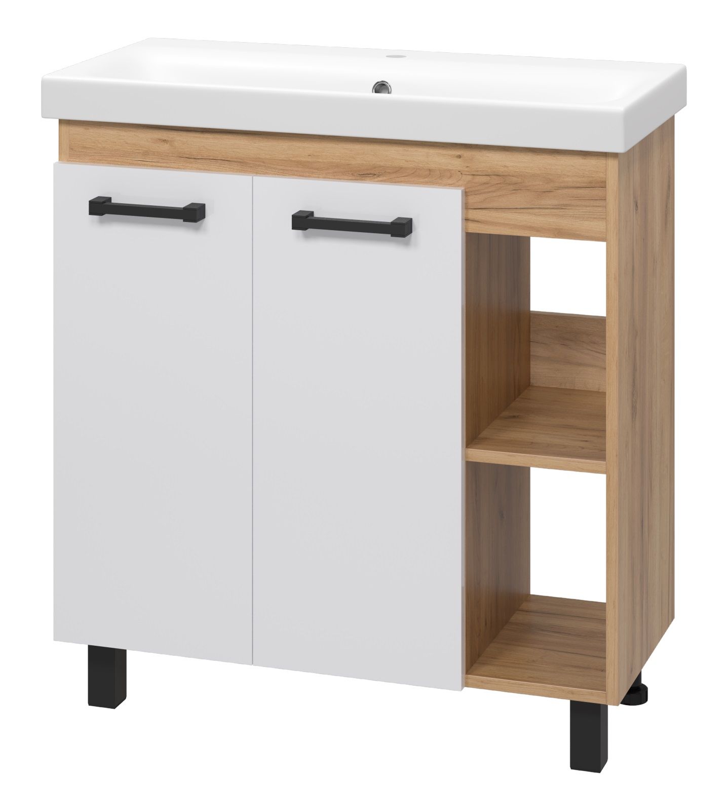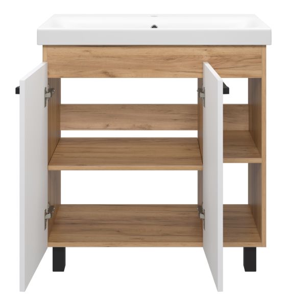 Напольная тумба под раковину Misty Крафт 80см белый/дуб крафт золотой купить