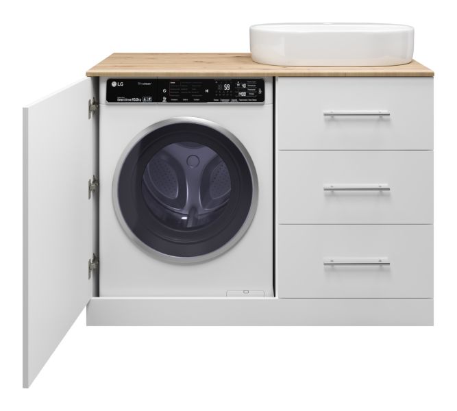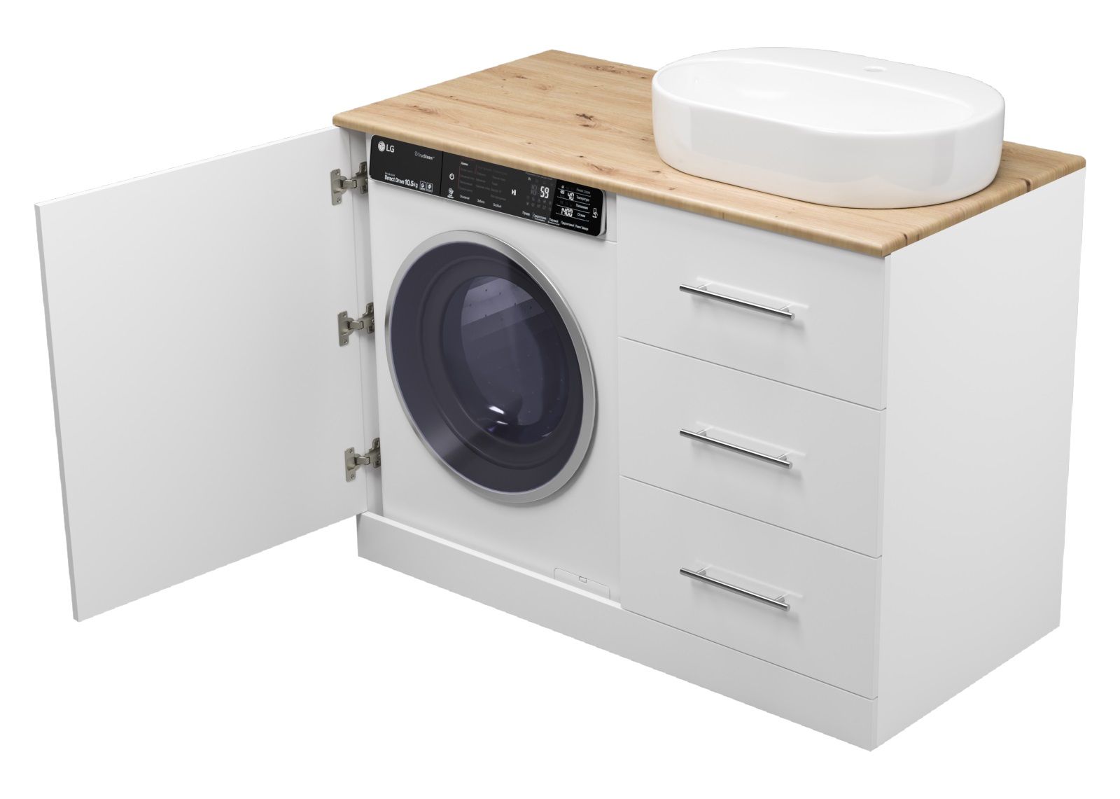 Напольная тумба под раковину Misty Респект под стиральную машину 120см правая белый/дуб Артизан купить