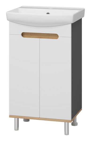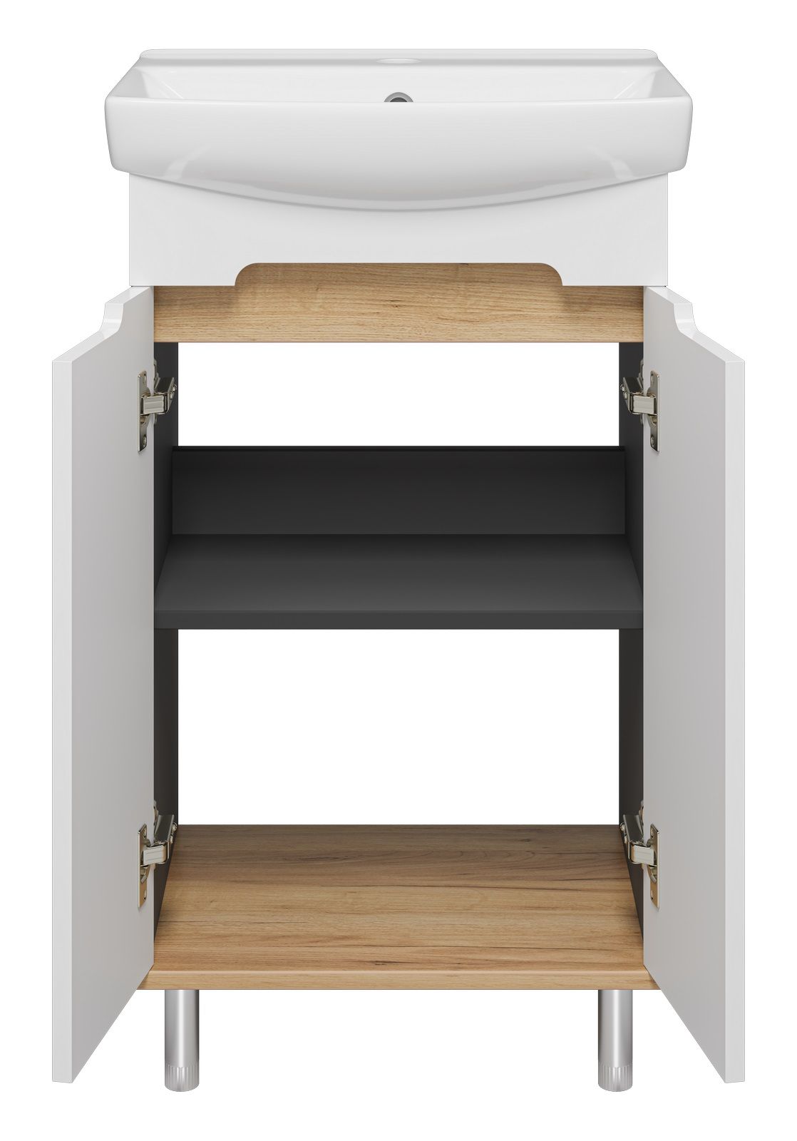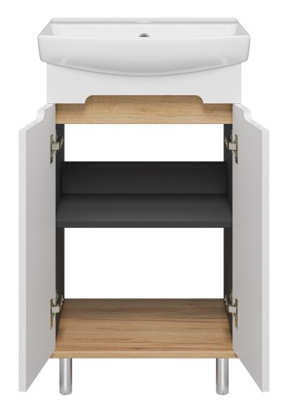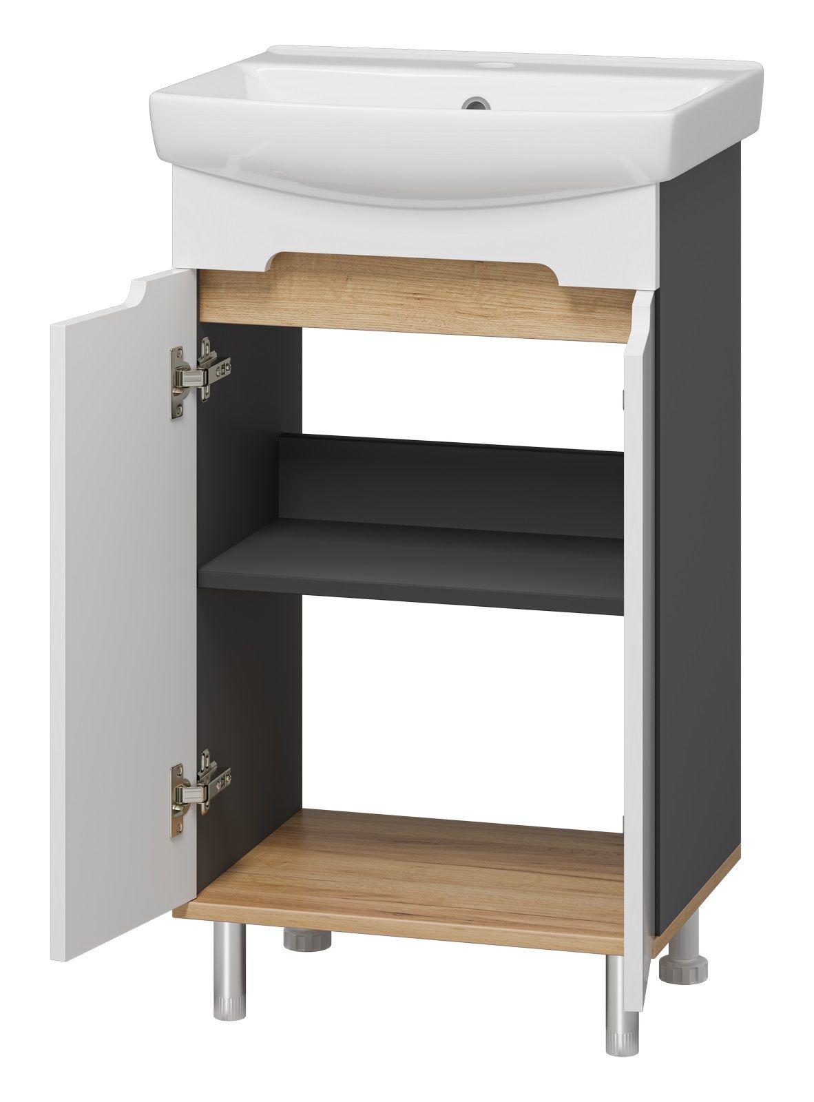 Напольная тумба под раковину Misty Сканди 50см белый/дуб крафт золотой/антрацит купить