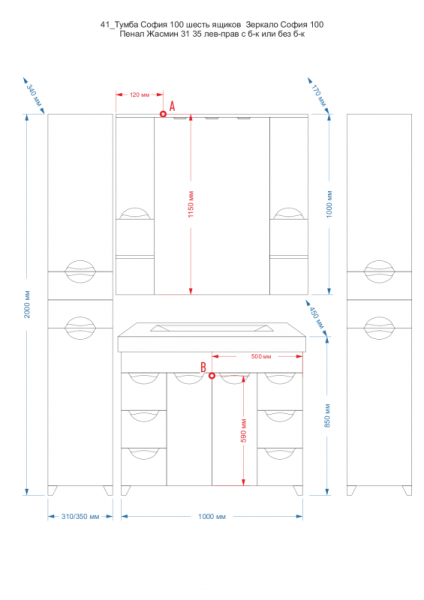 Напольная тумба под раковину Misty София с шестью ящиками 100см белый Напольная тумба под раковину Misty София с шестью ящиками 100см белый Казань 23010.45 25710.00 Misty