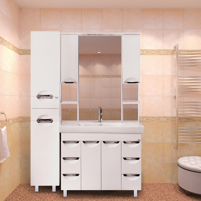 Напольная тумба под раковину Misty София с шестью ящиками 100см белый купить