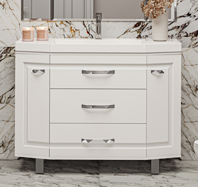 Напольная тумба под раковину – это не просто элемент мебели, но настоящее произведение искусства, которое сочетает в себе функциональность и изысканный дизайн. Изготовленная из высококачественных материалов, она гарантирует долговечность и устойчивость к воздействию влаги.Удобная система хранения позволяет размещать все необходимое для гигиенических процедур, а её продуманные размеры отлично вписываются даже в небольшие помещения. Стильные ручки и элегантные фасады придают тумбе особый шарм, а разнообразие цветовых решений позволит выбрать модель, соответствующую любому интерьеру – от классического до модерн.Мягкие линии и непринужденные формы делают тумбу неотъемлемой частью ванной, превращая её в любимое место для отдыха. Совершенное сочетание эстетики и практичности позволяет создать гармоничный и стильный интерьер, что делает напольную тумбу для ванной комнаты идеальным аксессуаром для любого дома