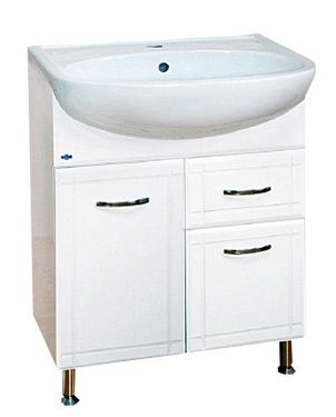 Элегантный дизайн и цветовое решение тумбы Уют 60 преобразят даже самую скучную ванную комнату. Напольная модель представлена в комплекте с керамической полувстраиваемой раковиной, и оснащена отделением с парой распашных дверок и расположенным под ним широким выдвижным ящиком.Декорированные фрезеровкой белые фасады изделия красиво сочетаются с белой царгой и боковыми элементами корпуса, а также с выступающей чашей раковины. Особую изысканность тумбе придают небольшие ручки и ножки из металла с золотистым покрытием.Материалы корпуса и фасадов отличаются прочностью и долговечностью, и проверены на соответствие экологической безопасности, а многослойное эмалевое покрытие служит надежной защитой от влаги.