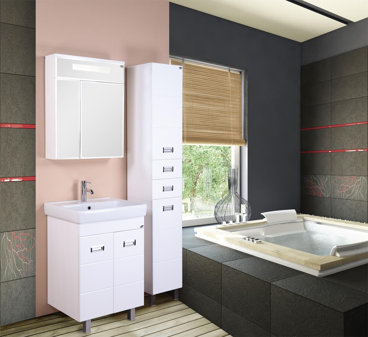 Глянцевый белый цвет фасада, ненавязчивая горизонтальная фрезеровка, врезные хромированные ручки и аккуратная лаконичность - все это позволяет коллекции Балтика стать центральным звеном интерьера ванной комнаты.