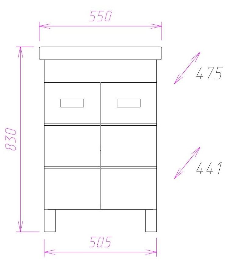 Размеры тумбы без учета раковины и ножек: 50x44x67 см.