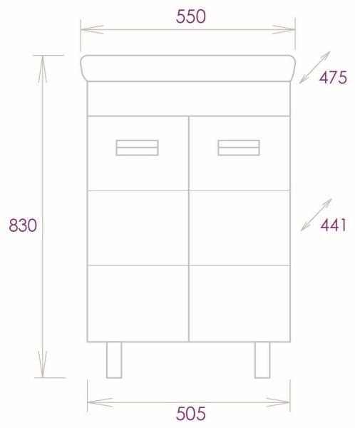 Размеры тумбы без учета раковины и ножек: 50x44x67 см.