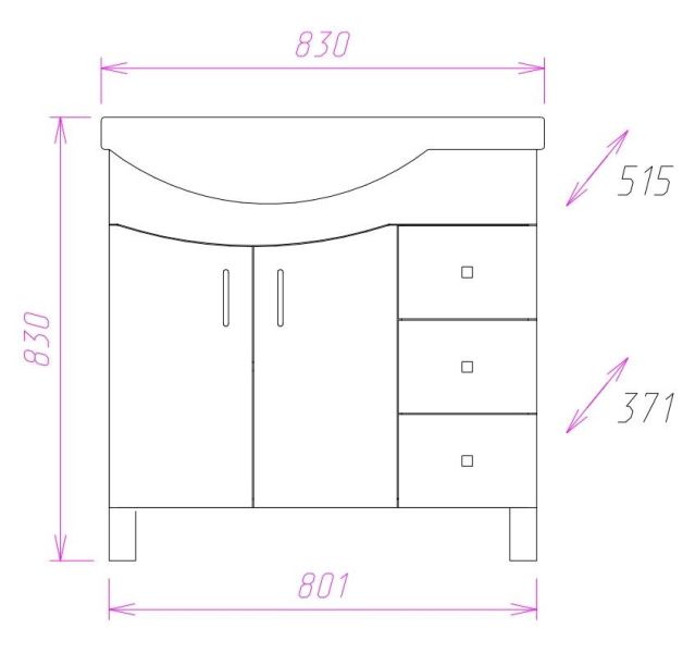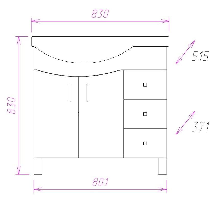 Размеры тумбы без учета раковины и ножек 80x37x68 cм.