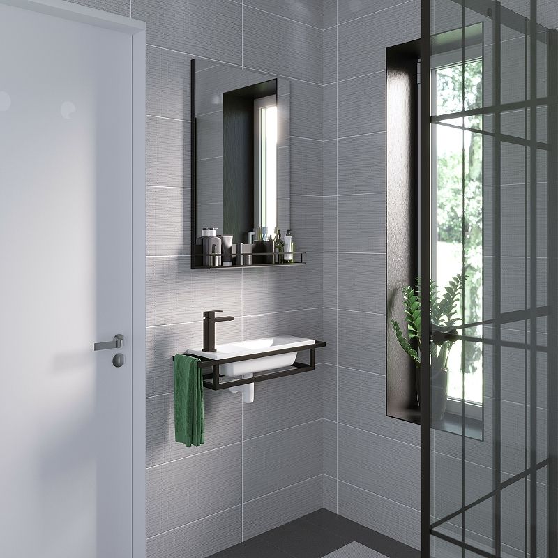 Дверцы, оснащенные системой плавного закрывания, скрывают просторные отделения для хранения банных принадлежностей.