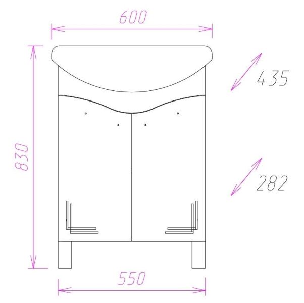 Размеры тумбы без учета раковины и ножек 55х28х68 см.