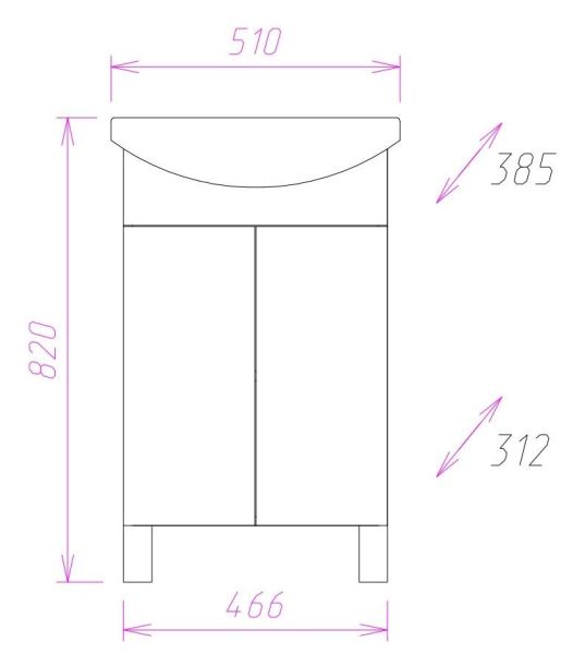 Размеры тумбы без учета раковины и ножек 47х31х68 см.