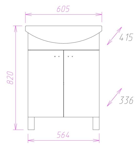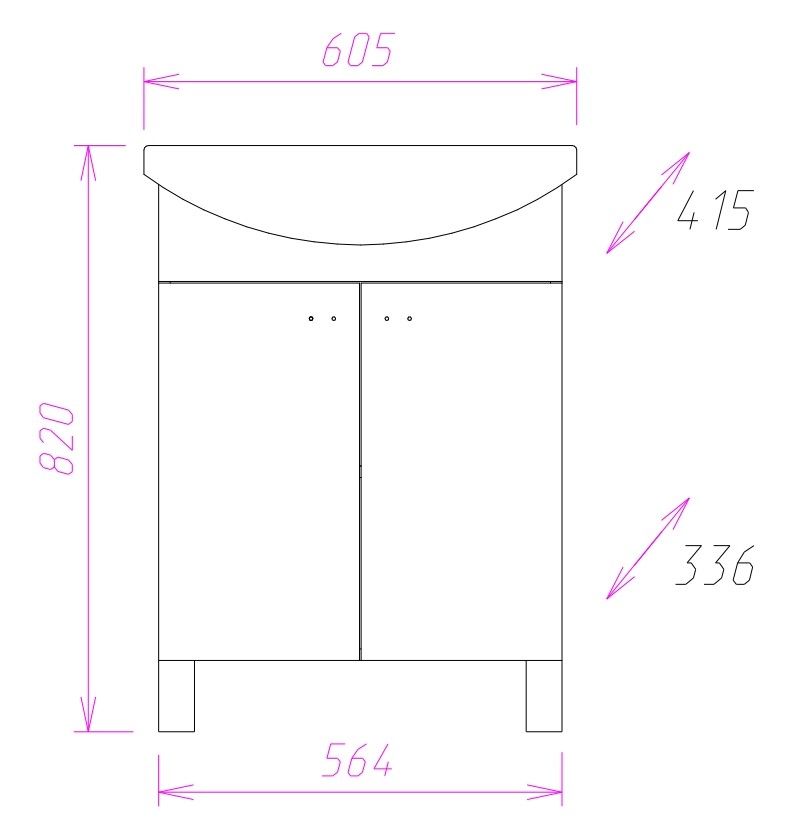 Размеры тумбы без учета раковины и ножек 56х34х68 см.