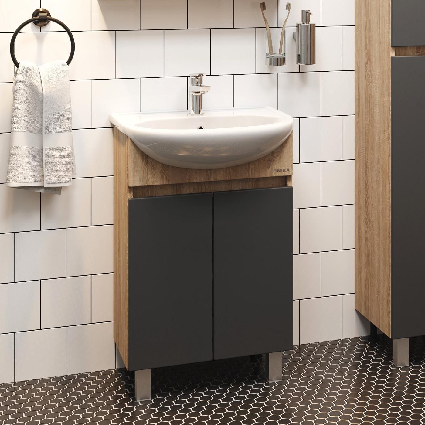 Напольная тумба под раковину Onika Милтон 106147 60см серый/дуб сонома купить