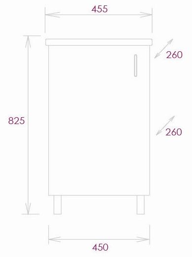 Размеры тумбы без учета раковины и ножек 45x26x68 cм.