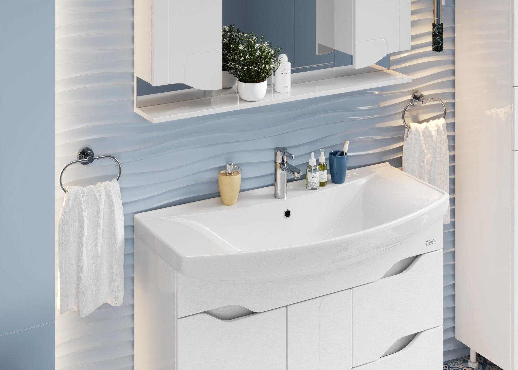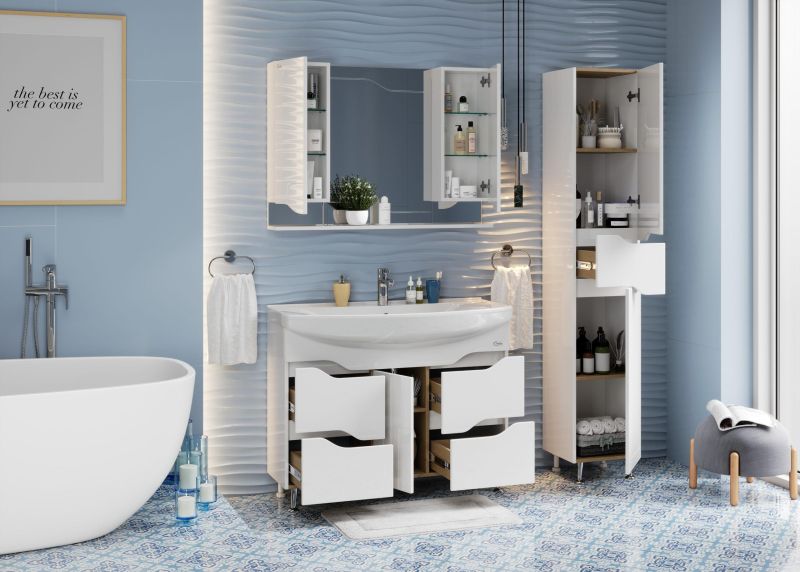 Каждая деталь напольной тумбы Onika Веронэлла 105 отражает индивидуальность владельца, создавая безупречный стиль в ванной комнате.