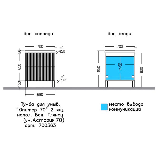 Тумба под раковину СанТа Юпитер 70 700363 напольная.