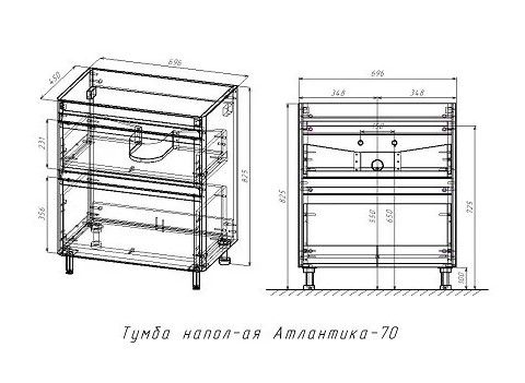 Тумба под раковину Style Line Атлантика 70, СС-00002344, 70 см, напольная, Люкс Plus, ясень перламутрРаковина приобретается отдельно.