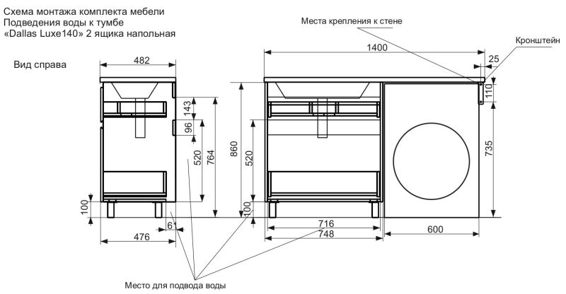 Напольная тумба с раковиной Эстет Dallas Luxe ФР-00002519 Л 140см два ящика белый купить