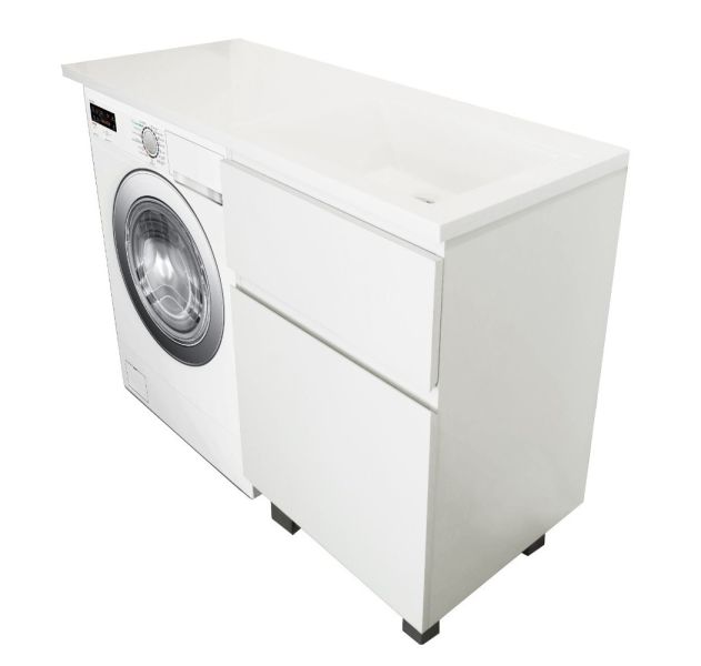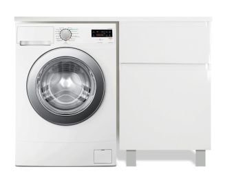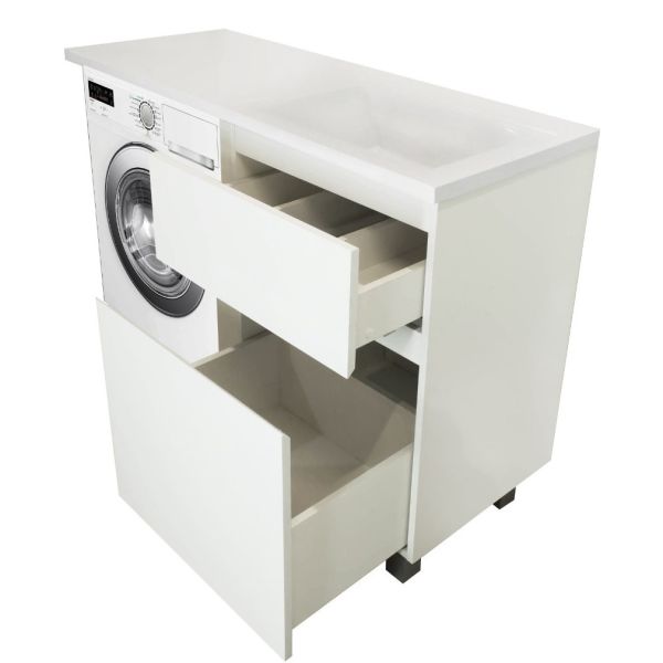 Коллекция мебели для ванной комнаты Dallas Luxe покоряет своей удивительной простой и функциональностью. Стильная лаконичная тумба, укомплектована раковиной из литьевого мрамора с удобной чашей. Стиральная машина устанавливается под столешницей, за счет чего экономит место в ванной комнате. В тумбе имеются два ящика. Нижний ящик тумбы – широкий и вместительный – предназначен для крупных предметов, а в верхнем имеется специальная организация пространства, позволяющая хранить мелкие вещи.