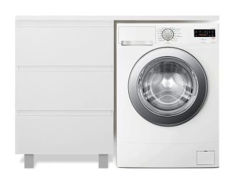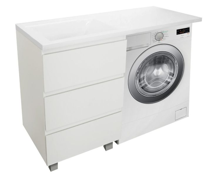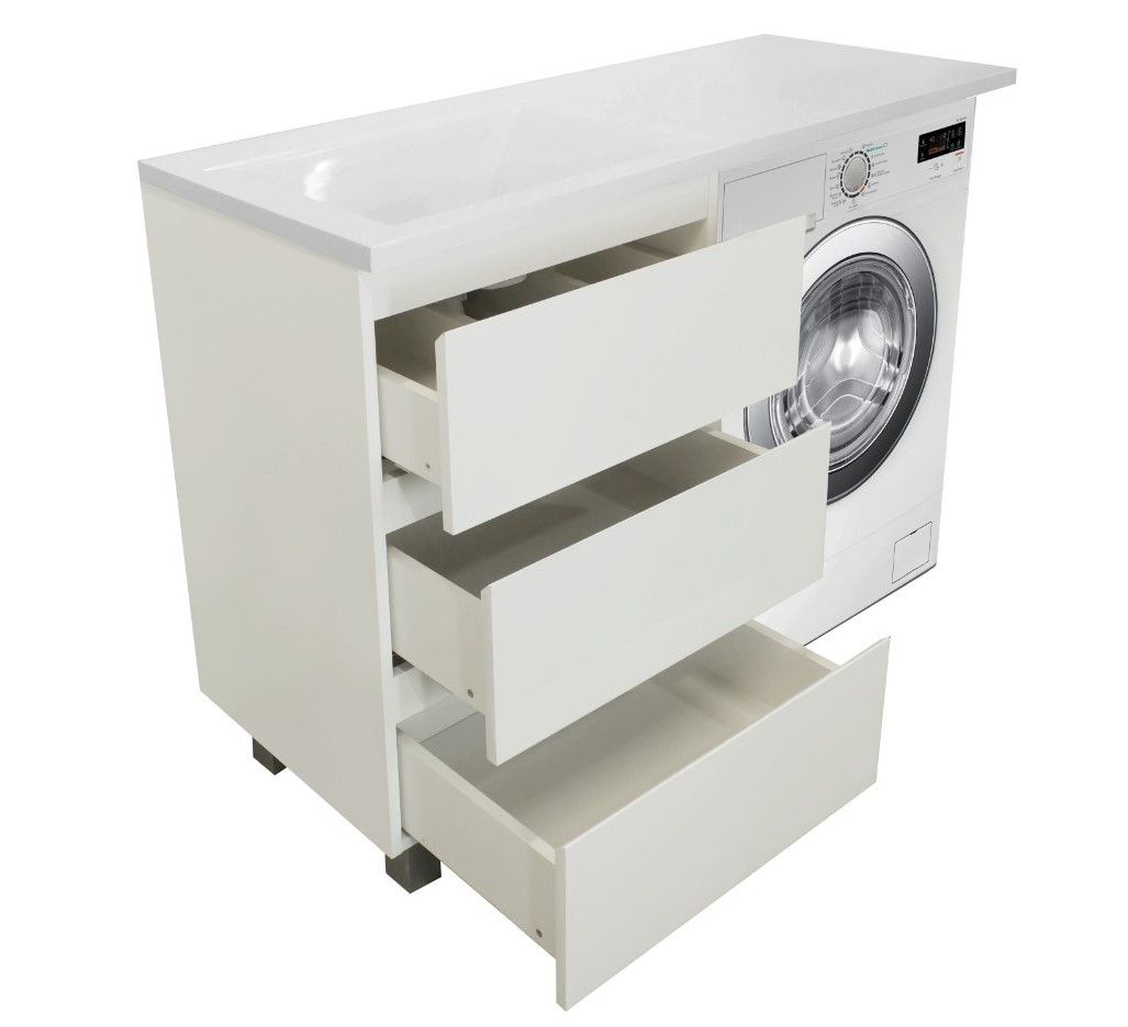 Приоритетом в выборе тумбы с раковиной является площадь ванной комнаты. Функциональная тумба с тремя ящиками решит вопрос для большинства покупателей. Тумба укомплектована раковиной из литьевого мрамора с удобной чашей, стиральная машина устанавливается под столешницей. Три ящика позволят распределить как крупные, так и мелкие вещи.