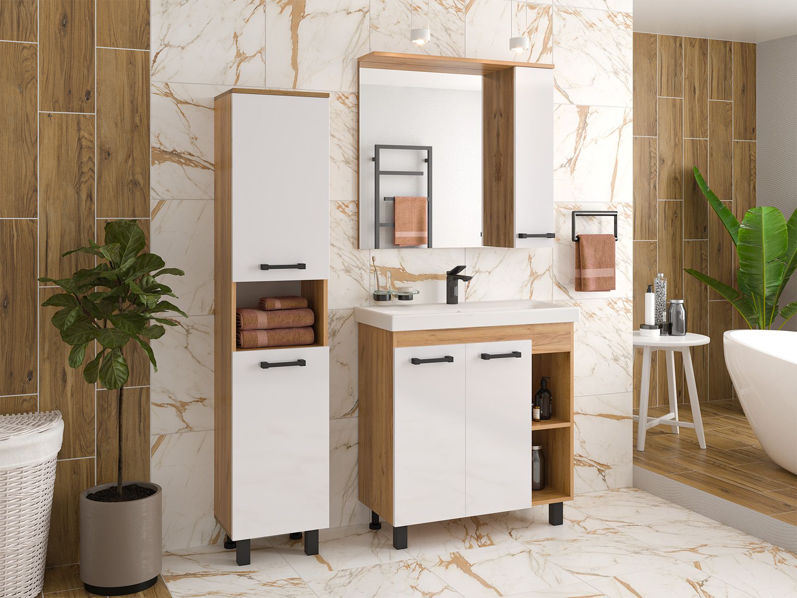 Шкаф-пенал для ванной комнаты – это стильное решение, которое гармонично вписывается в современный интерьер. Его элегантные линии и аккуратные формы создают атмосферу чистоты и порядка, что особенно важно в таком интимном пространстве. Изготовленный из качественных влагостойких материалов, этот шкаф обеспечивает долговечность и надежность, даже в условиях повышенной влажности.Основное преимущество шкаф-пенала заключается в его вместительности. Удобные полки и ящики позволяют организовать пространство и разместить все необходимое: от косметики до бытовых принадлежностей. Каждая деталь продумана для удобства использования, что делает утренние и вечерние ритуалы более приятными.Будь то строгий минимализм или уютный скандинавский стиль, шкаф-пенал станет акцентом, который подчеркивает индивидуальность вашего пространства. Не упустите возможность преобразить свою ванную комнату, добавив в нее этот элегантный и практичный элемент.