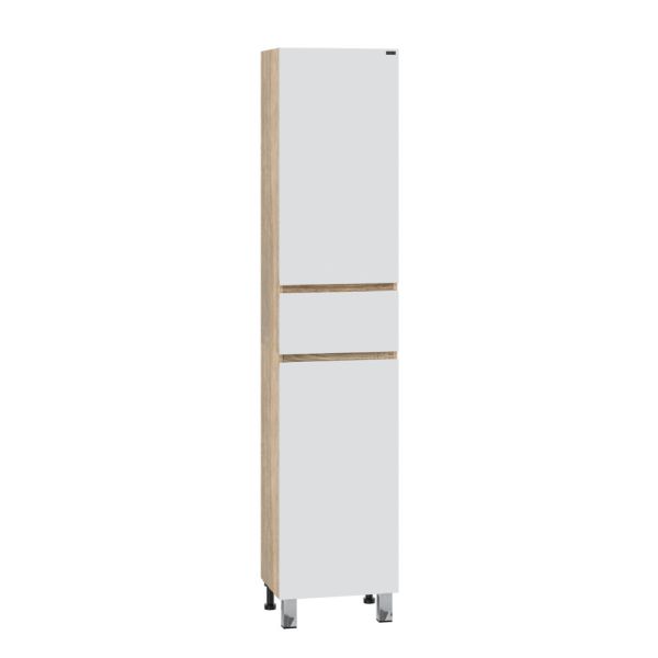 Комплектация: на дверках петли плавного закрывания - 2 шт., шариковые направляющие - 1 шт., полочки - 4 шт., ножки хром - 2 шт, ножки пластик - 2 шт. Шкаф-пенал для ванной СаНта Марс 40 напольный. Фасады шкаф-пенала для ванной комнаты изготовлены из МДФ, корпус колонны из влагостойкого ЛДСП. Фасады шкаф-колонны для ванной комнаты покрыты эмалью, боковины - ламинат. Шкаф-пенал для ванны 40 см укомплектован съемными полочками из ДСП, двумя хромированными ножками и двумя пластиковыми. Петли у колонны с плавным закрыванием. Выдвижной ящик укомплектован шариковыми направляющими полного выдвижения ( не плавного закрывания). Купить шкаф-пенал для ванны вы можете оставив заказ на нашем сайте. Шкаф-колонну вы можете приобрести в дополнение к тумбам из коллекции Санта МАРС.