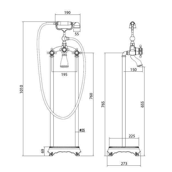 Напольный смеситель для ванны ABBER Klassik золото AF8415G купить