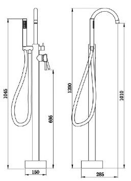 Смеситель BRAIES Brush nickel напольный для отдельностоящей ванны BOCH MANN BM8922Картридж SCCДушевая штанга: ЛатуньДушевой шланг 1,5 м