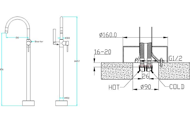 Смеситель для ванны Boheme Uno 469-MW напольный: