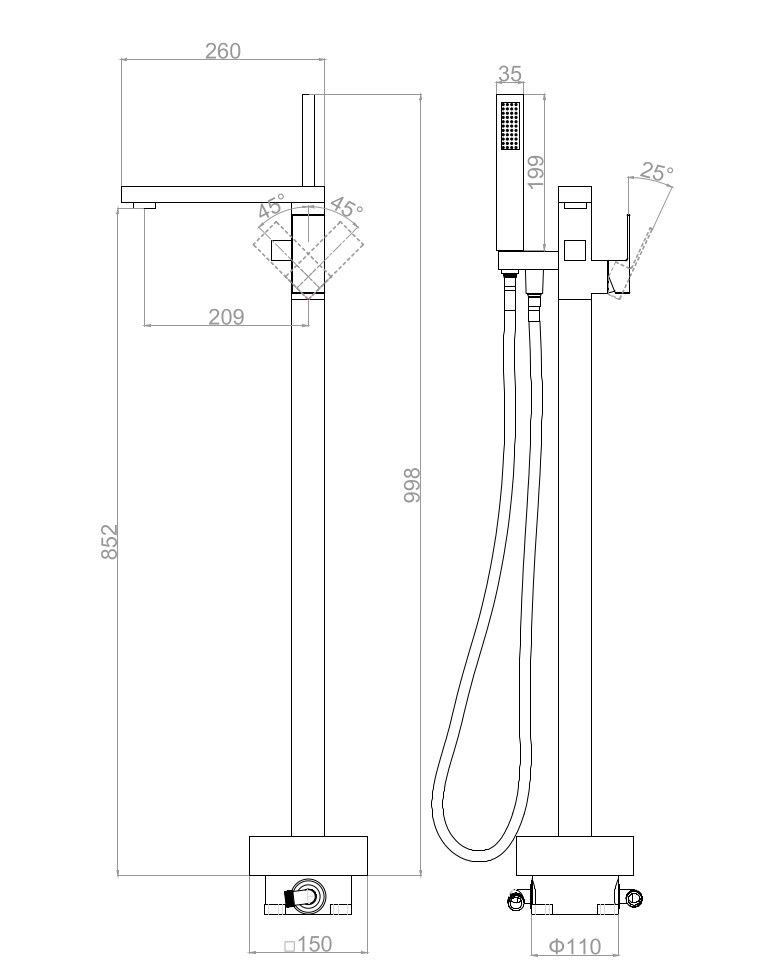 Напольный смеситель для ванны DQ Bayern.Liszt DA1516008 белый матовый купить