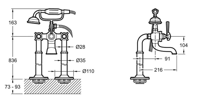 Напольный смеситель Jacob Delafon Cleo 1889, E24314-BGG для ванны и душа, глянцевое золото.