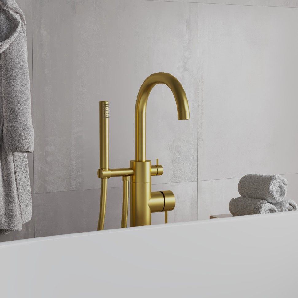 - Напольное расположение и высота смесителя позволяют установку в бассейн, сауну или станут новаторским решением для отдельно стоящей ванны.