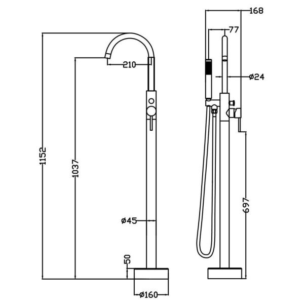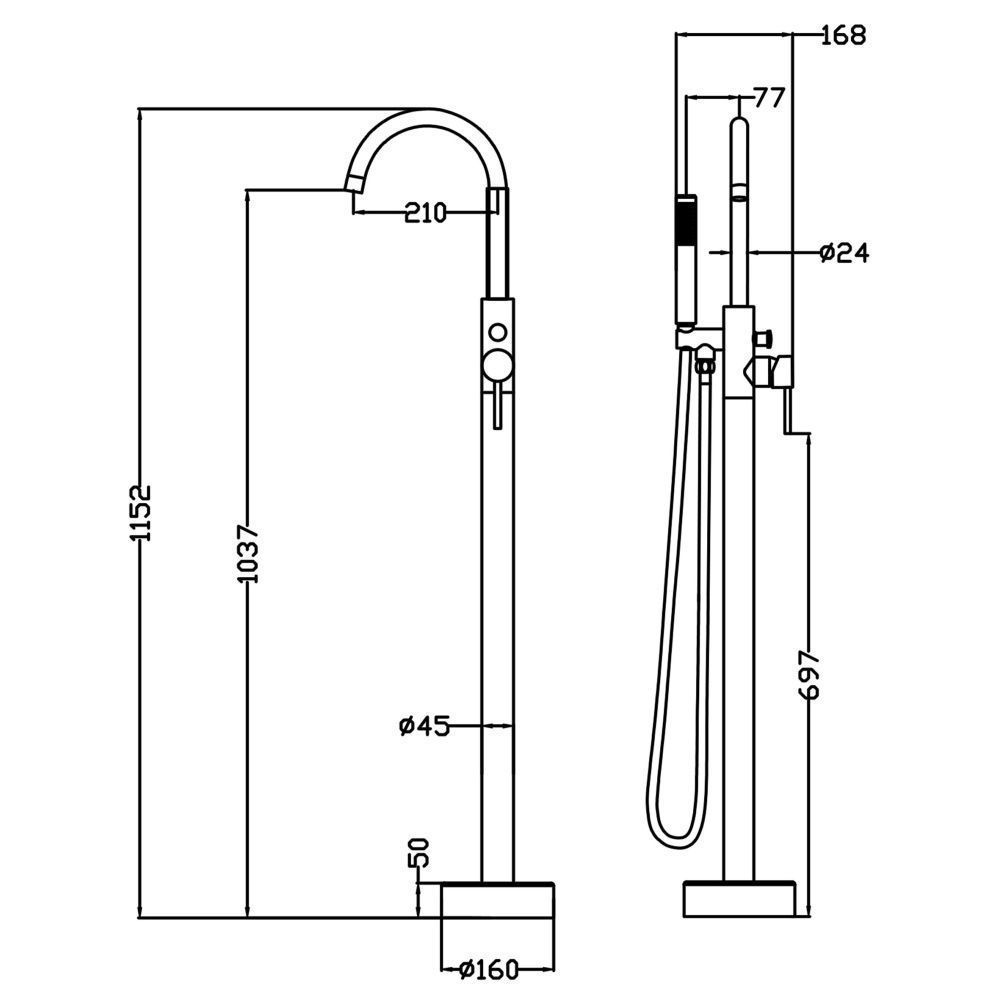 Смеситель для ванны напольныйМатериал: латунь