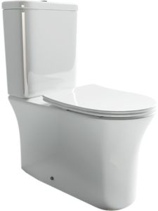 Напольный пристенный унитаз с бачком Star Rimless, двойной смыв 3/6, нижняя подводка глубокий смыв, горизонтальный (универсальный) выпуск, с крепежом, ультра тонким сидением с функцией плавного закрытия, дюропласт