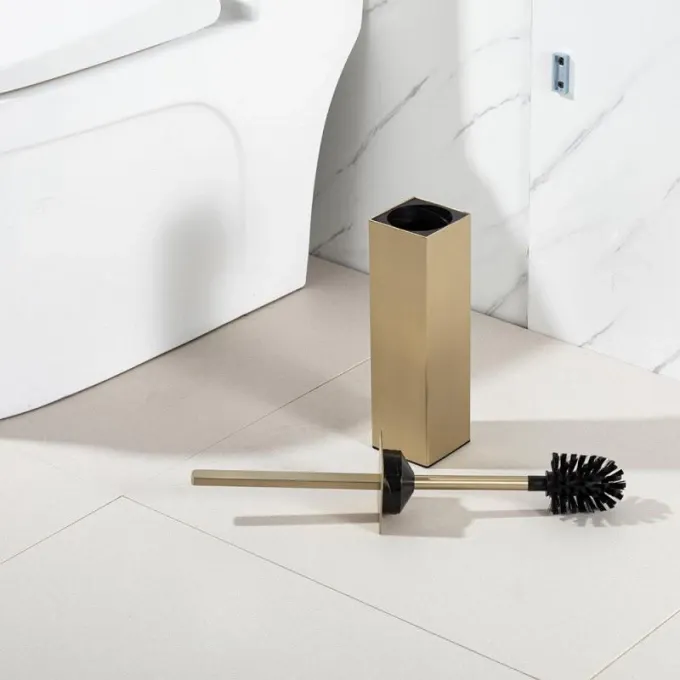 Ершик для унитаза - незаменимая вещь в любом хозяйстве. Он позволяет хорошо и качественно очистить унитаз в труднодоступных местах, благодаря своим гибким ворсинкам, и при этом не царапает поверхности. Цвет изделия - сатиновое матовое золото. Данный цвет очень хорошо зарекомендовал себя в быту, так как на нем не видны разводы, а покрытие держателя для ершика защищает его от коррозии и известкового налета.