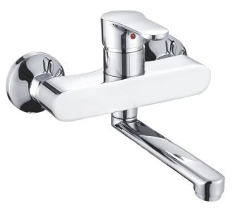 Настенный смеситель для кухни Shevanik S5693, хром.Управление: рычажное.Вращение излива: да.Выдвижной излив: нет.Гибкий излив: нет.Высота:17,9.