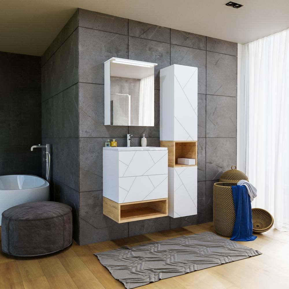 Ниша является дополнительным элементом к тумбе под раковину. Благодаря нише у тумбы появляется дополнительная полка для хранения предметов гигиены, полотенец и других принадлежностей.